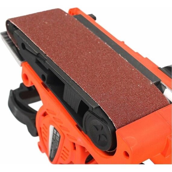 Линейная скорость полировальной ленты, м/мин 200-380, Размер полировальной ленты, мм 457x76, Шлифовальная поверхность, мм 76х130, Потребляемая мощность, Вт 810, Регулировка частоты вращения, Фиксатор продолжительной работы, Прорезиненная рукоятка, Прорезиненный морозостойкий кабель.