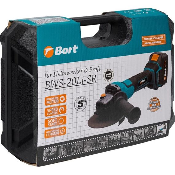 Время зарядки аккумуляторной батареи, ч: 1. Габариты упаковки, см: 42 x 12 x 29,5. Гарантия, г: 2. Двигатель: Бесщеточный двигатель. Диаметр диска, мм: 125. Емкость заряжаемого аккумулятора, Ач: 4. Количество аккумуляторных батарей, шт: 2. Модель: BWS-20Li-SR. Напряжение аккумуляторной батареи, В: 20. Плавный пуск: Да. Поворотная рукоятка: Нет. Посадочный диаметр диска, мм: 22,2. Расширенная гарантия, г: 5. Регулировка положения кожуха без инструмента: Да. Регулировка скорости: Да. Режим работы: 2. Скорость холостого хода, об/мин: 0...7 000. Тип аккумуляторной батареи: Li-Ion. Тип резьбы шпинделя: M14.