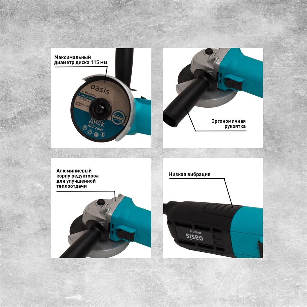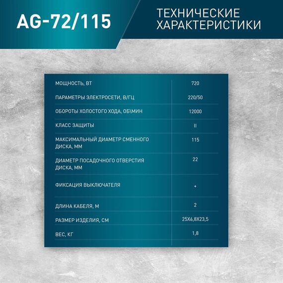 Мощность, Вт 720 Параметры электропитания, В/Гц 220/50 Максимальный диаметр диска, мм 115 Обороты холостого хода, об/мин 12000 Диаметр посадочного отверстия шлифкруга, мм 22 Размеры изделия, см 26,5×7,6×10 Вес нетто, кг 1,92