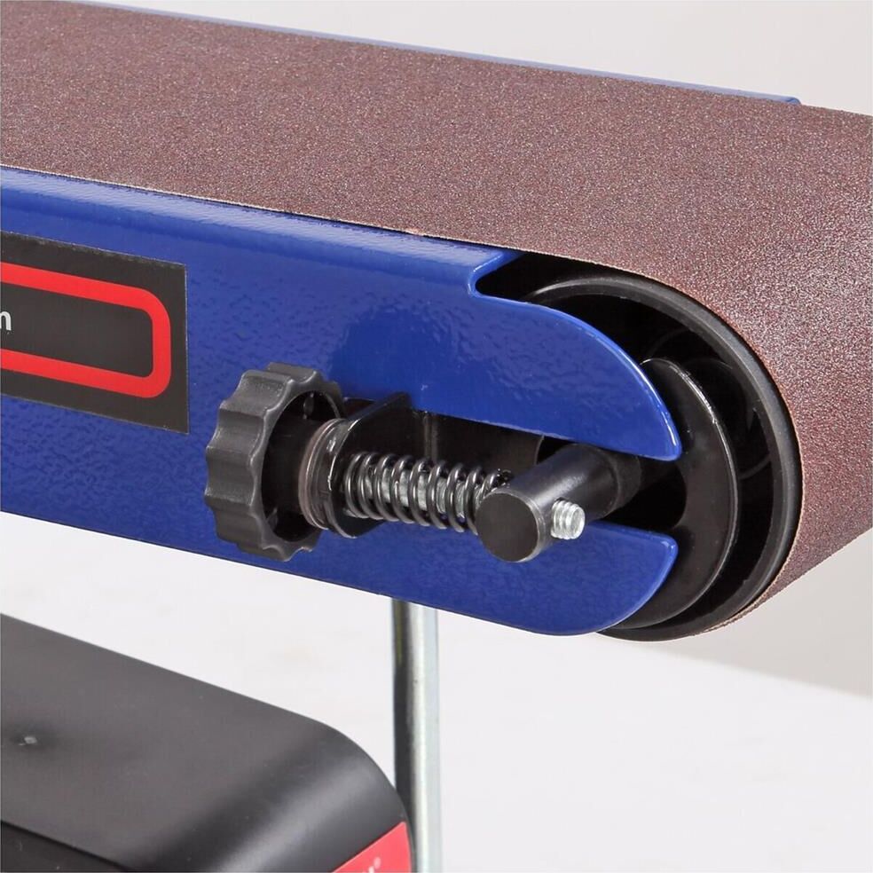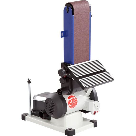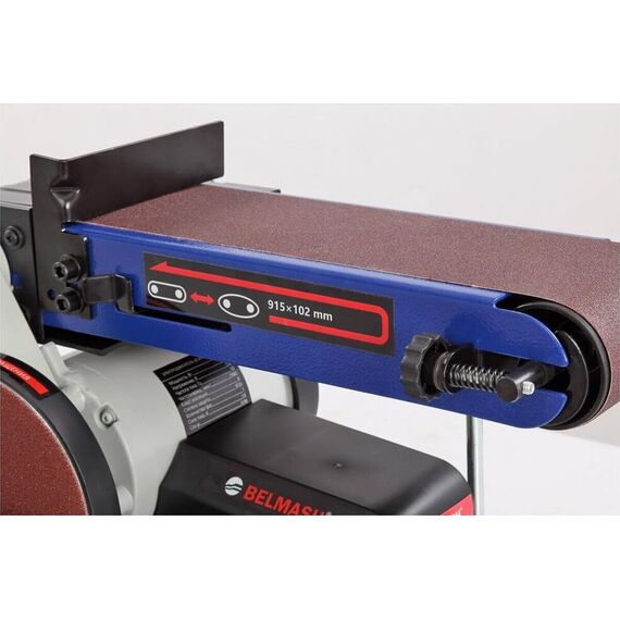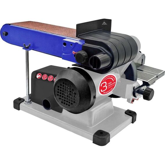 Станок шлифовальный. Мощность 500 Вт Напряжение питающей сети 230 В Частота тока 50 Гц Тип электродвигателя Асинхронный Материал рабочего стола Алюминий Размер рабочего стола (ДхШхТ) 200х135х16 мм Тип паза П-образный Размер паза (Ш × В) 16 × 6,5 мм Диаметр патрубка пыле/стружкоудаления 35/31 мм Угол наклона стола 0…+45 ° Длина шлифовальной ленты 915 мм Ширина шлифовальной ленты 102 мм Скорость шлифовальной ленты 7,4 м/с Угол наклона шлифовального ленточного узла 0…+90 ° Диаметр шлифовального диска 150 мм Частота вращения шлифовального диска 2980 об/мин Диапазон углов углового упора -30...+30 ° Габаритный размер (ДхШхВ) 470х405х630 мм