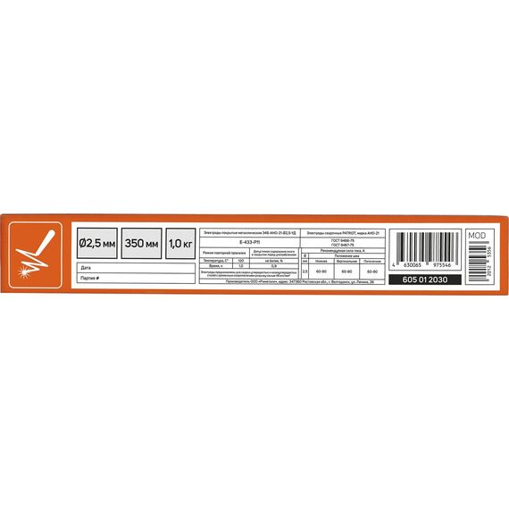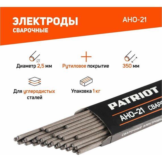 Электрод PATRIOT 605012030 марка АНО-21, диам. 2,5мм, длина 350мм, уп. 1кг