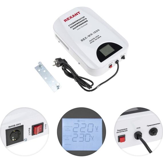 Стабилизатор однофазный пониженного напряжения REXANT (11-5043) REX-WR-1500 белый