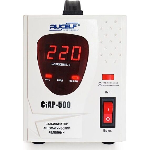 Тип стабилизации: Релейный. Диапазон стабилизации: 140-260 В. Рабочий диапазон: 140-265 В. Точность стабилизации: ±6%. Мощность: 500 ВА. Габаритные размеры: 265х120х170 мм. Вес: 2,3 кг.