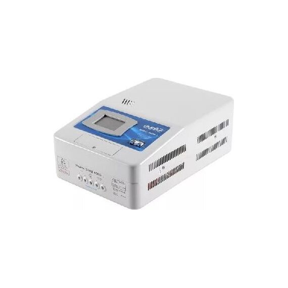 Тип стабилизации: Релейный Диапазон стабилизации: 110-270 В Рабочий диапазон: 95-280 В Точность стабилизации: ±8% Мощность: 6000 ВА Габаритные размеры (ДхШхВ): 445х330х220 мм Вес: 12,7 кг LCDдисплей,настенный, микропроцессорное управление, рабочий диапазон 100-300В,точность 220+-3,5%, Тип ступенчатый, релейный, КПД 98%.