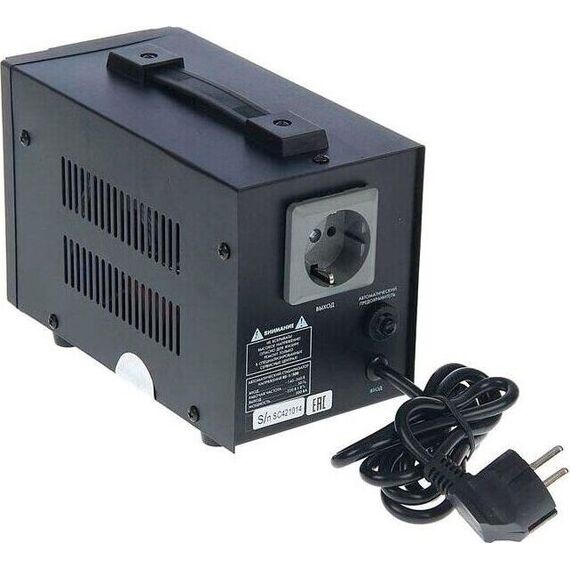 Стабилизатор напряжения релейный однофазный напольный. 70-275 В. 1000ВА. Входная частота, Гц: 50-60. Максимальное напряжение отключения нагрузки, В: 270 2 (вход). Минимальное напряжение отключения нагрузки, В: 125 2 (вход). Максимальный ток, А: 5. Выходное напряжение, В: 220. Количество фаз, шт.: 1. Количество реле, шт.: 4. КПД, %: 97. Защита от перегрузки. Защита от пониженного напряжения. Защита от короткого замыкания. Защита от повышенного напряжения. Защита от поражения электрическим током: I. Защита от перегрева. Ширина изделия, мм: 180. Длина изделия, мм: 265. Высота изделия, мм: 168. Вес: 2,825 кг.