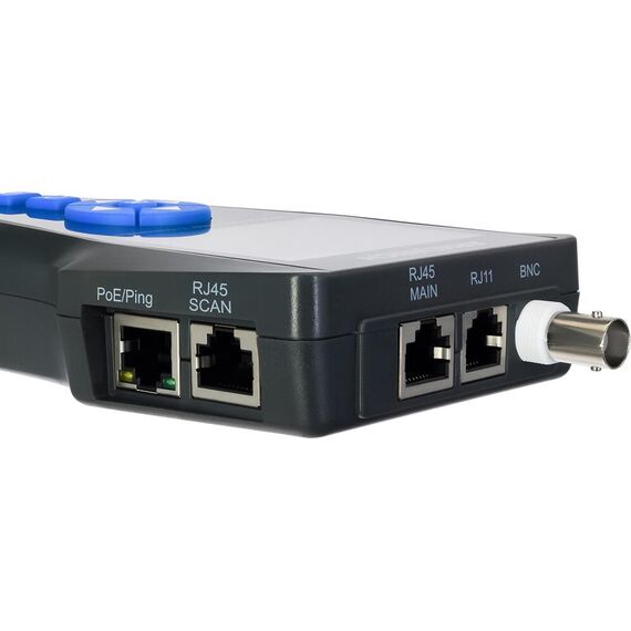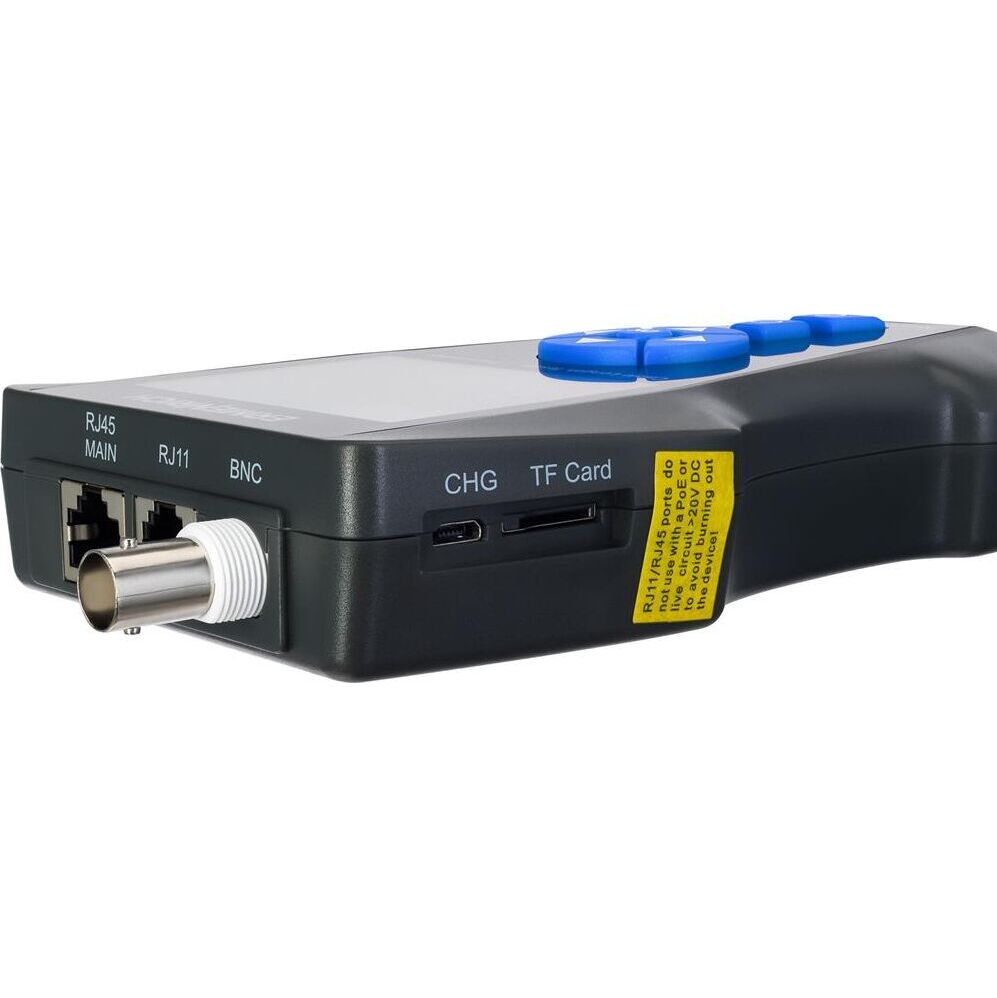 Основные особенности: Обнаружение и тестирование разных типов кабелей: сетевых, коаксиальных, телефонных и проч. Измерения методом TDR – импульсной рефлектометрии во временной области Максимальная дистанция измерения длины кабеля – 1000 метров Поиск кабелей в пучке, определение кабеля по индикации на роутере или коммутаторе Определение разводки проводов: короткого замыкания, перепутанных пар, обрыва Расчет дистанции до обрыва и короткого замыкания Тесты PoE и PING, автоматическое присвоение IP-адресов, сохранение результатов на карту памяти Комплектация: Передатчик Приемник Дистанционный модуль Патч-корд RJ11 Патч-корд RJ45 Зажим типа «крокодил» Кабель постоянного тока Кабель microUSB Сумка Инструкция по эксплуатации и гарантийный талон