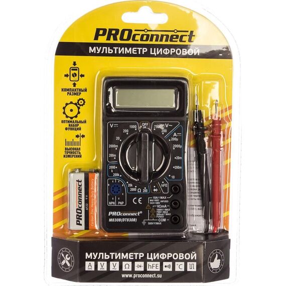 Измерительные приборы и инструмент PROCONNECT (13-3011) M830B (DT830B) Портативный мультиметр