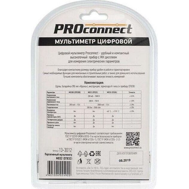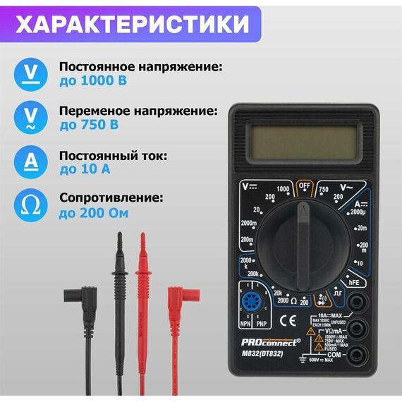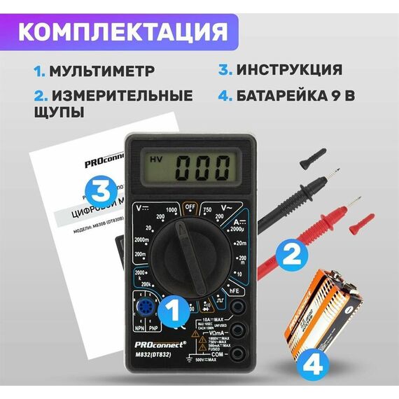 Измерительные приборы и инструмент PROCONNECT (13-3012) M832 (DT832) Портативный мультиметр
