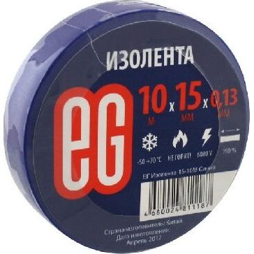 Изолента, материал основы: ПВХ, длина намотки: 10 м, ширина (Габарит X): 15мм, цвет изоленты: синий