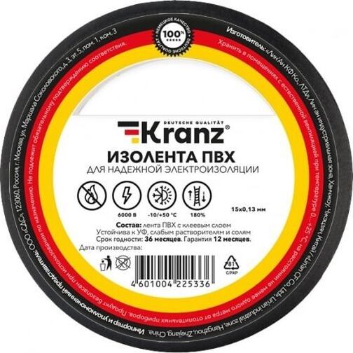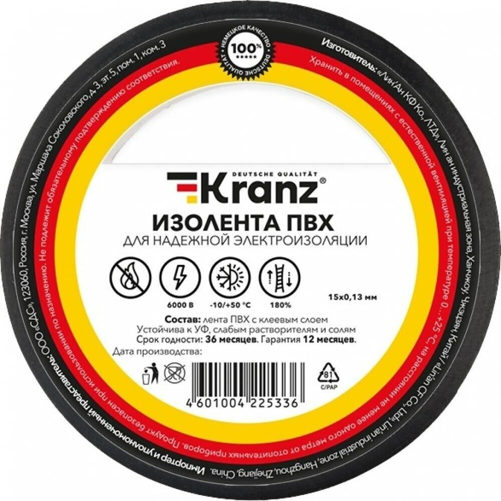 Изоляционная лента KRANZ (KR-09-2106) 0.13Х15 ММ, 25 М, ЧЕРНАЯ