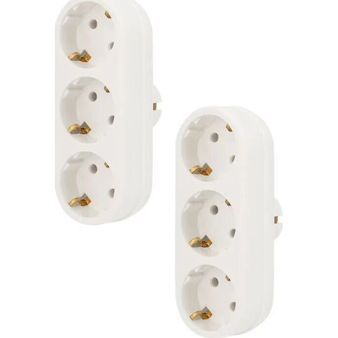 Разветвитель сетевой REXANT (11-1079-2) НАБОР ТРОЙНИКОВ ЭЛЕКТРИЧЕСКИХ ЛИНЕЙНЫХ, 16 А С ЗАЗЕМЛЕНИЕМ, (2 ШТ./УП.), БЕЛЫЙ