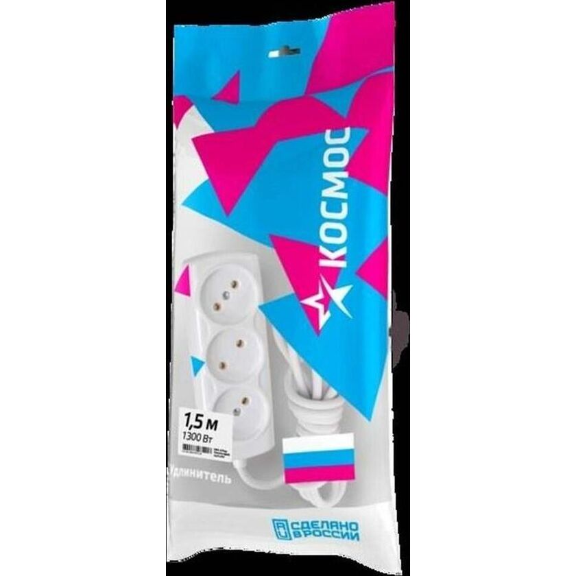 Удлинитель КОСМОС 6А 3 гн ПВС 2*0,75 (1,5м) до 1300Вт Россия