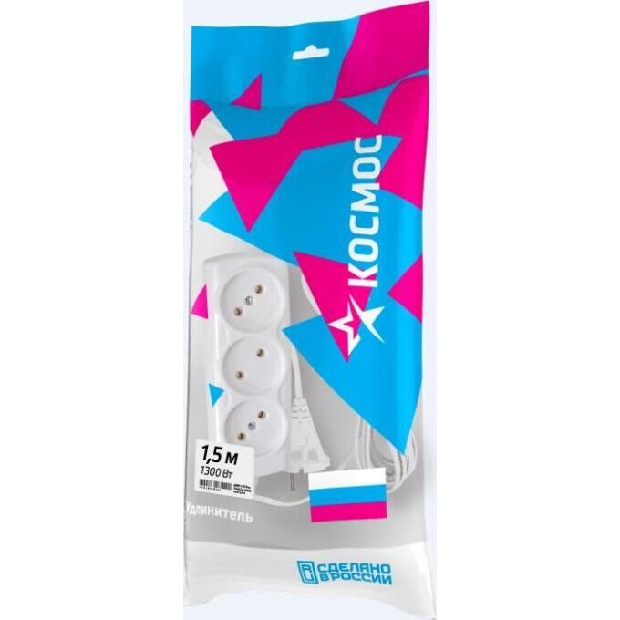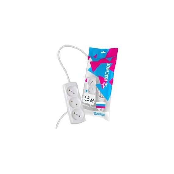 Удлинитель КОСМОС 6А 3 гн ШВВП 2*0,75 (1,5м) до 1300Вт