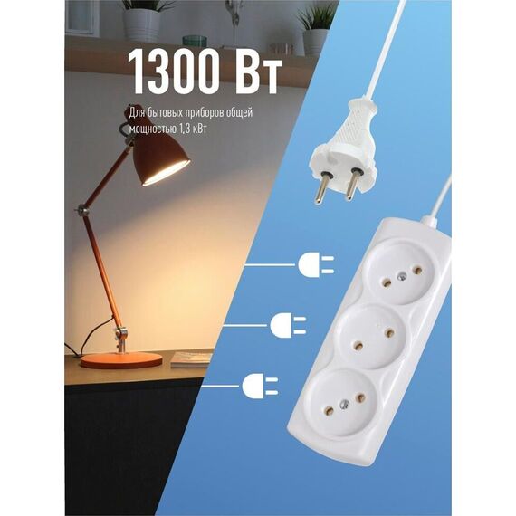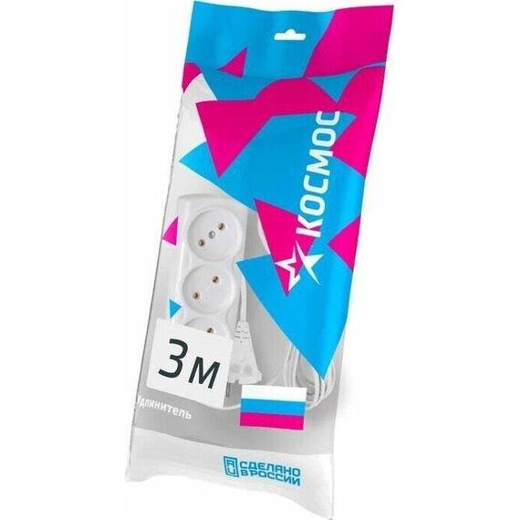 Удлинитель КОСМОС 6А 3 гн ШВВП 2*0,75 (3м) до 1300Вт Россия