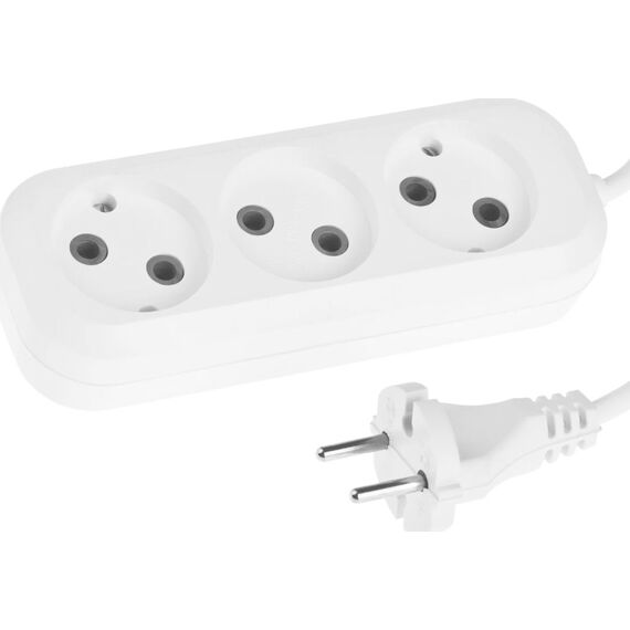 MAX нагрузка, Вт: 1300. Выключатель: нет. Защитные шторки: нет. Напряжение сети, В: 220. Номинальная сила тока, А: 10. Световая индикация: нет. Сечение провода, мм2: 2х0.75. Степень защиты: IP 20. Тип: удлинитель. Тип провода: ПВС. Цвет: белый. Кол-во розеток, шт: 3. Длина кабеля, м: 2. Заземление: нет.
