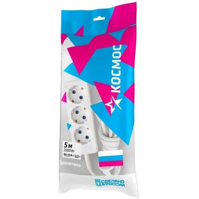 Удлинитель КОСМОС 10А 3 гн ПВС 3*0,75 (3м) с заземл до 1300Вт , Россия