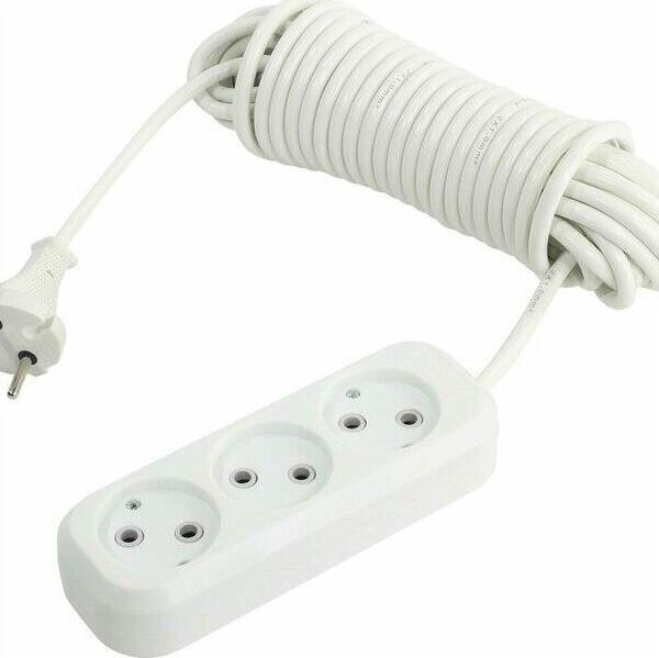 Удлинитель с заземлением, количество розеток - 3 , номинальный ток, А 16 максимальная мощность, Вт - 3500, сечение провода, мм2 - 3x1,0, материал корпуса ABS-пластик, длина шнура - 7 м.