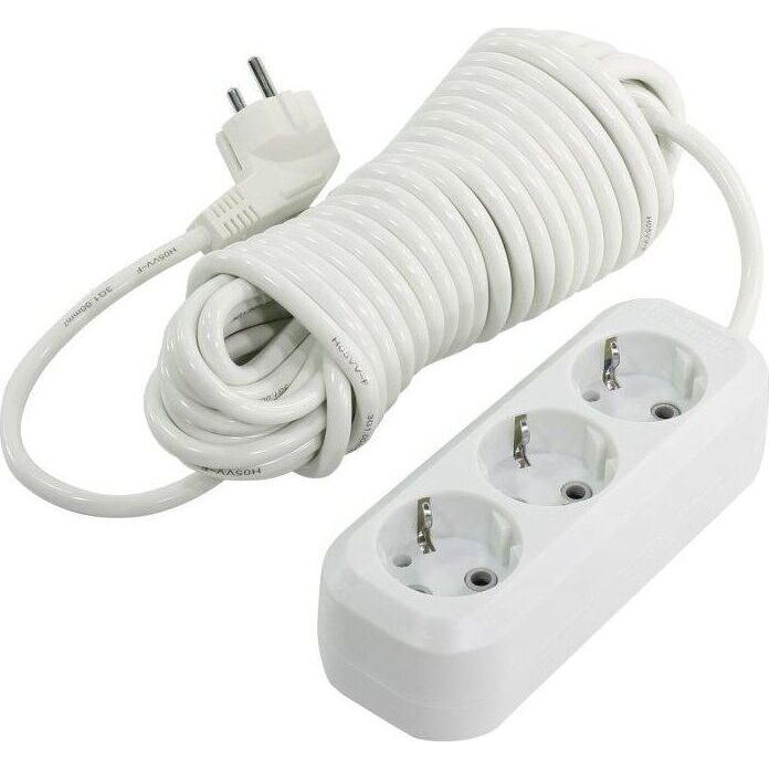 Удлинитель с заземлением, количество розеток - 3 , номинальный ток, А 16 максимальная мощность, Вт - 3500, сечение провода, мм2 - 3x1,0, материал корпуса ABS-пластик, длина шнура - 10 м.
