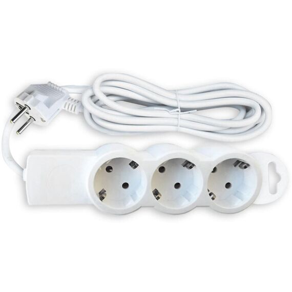 Номинальное напряжение, частота: 230В, 50Гц / максимальный ток нагрузки: 16А / максимально допустимая суммарная мощность нагрузки: 3500Вт (3,5 кВт) / тип провода (кабеля): ПВХ / сечение кабеля: 3 х 1,00 мм² / длина провода: 4,5 м / количество штепсельных гнёзд: 3 / защитные шторки: нет / заземляющий контакт: да / материал деталей контактных групп: латунь / материал колодки: пластик PP / степень защиты IP20 / крепление «Quick Fix» /