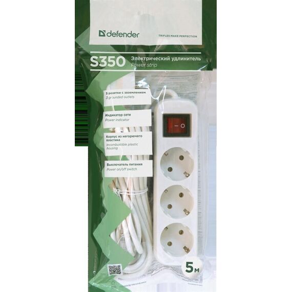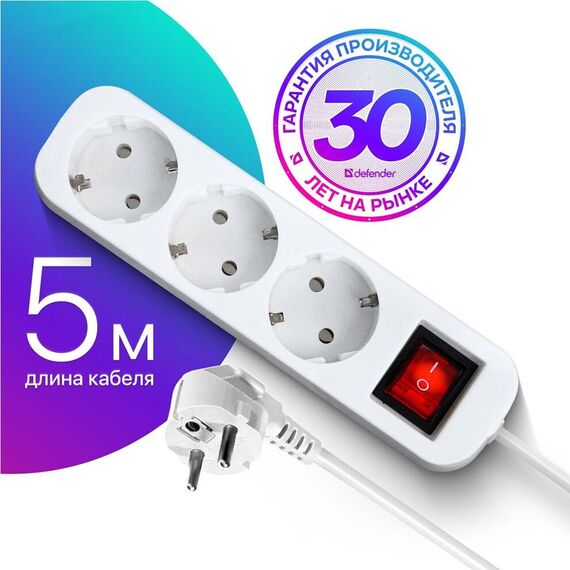 Удлинитель DEFENDER (99235) S350 - 3 розетки - 5,0 m