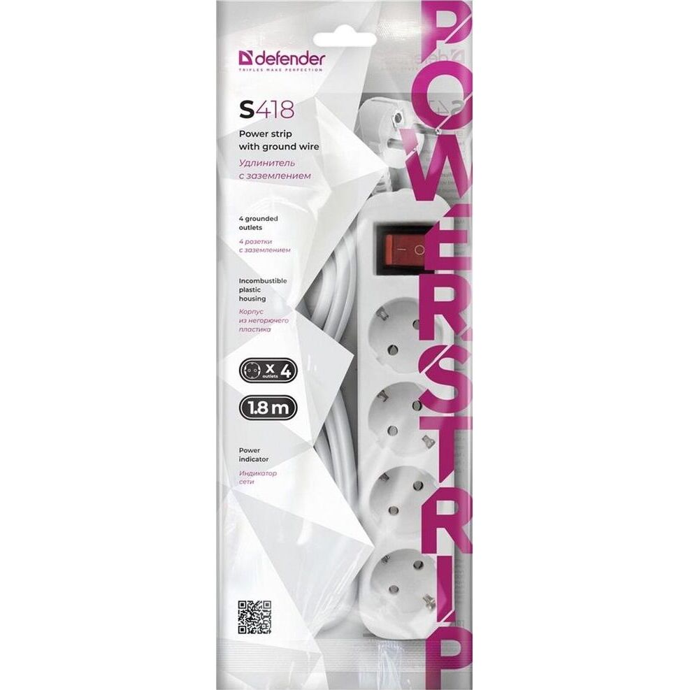 Удлинитель DEFENDER (99237) S418 - 4 розетки - 1,8 m