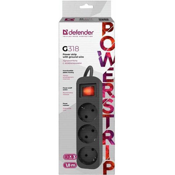 Удлинитель DEFENDER (99333) G318 - 3 розетки - 1.8 m