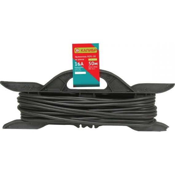 Удлинитель электрический "Калибр УСР1-50" на рамке, предназначен для работы в сетях переменного тока напряжением 230±10%, ~50 Гц. При помощи удлинителя легко подключить удалённые от стационарной розетки электроприборы, имеющие шнур с плоской или круглой вилкой. Незаменим - на стройке, садовом участке, в промышленности и в быту. *в зависимости от поставки, внешний вид рамки может отличаться от представленного на фотографии. Сечение 1,5 мм2. Максимальная нагрузка 10 А, 2300 Вт. Длина кабеля 50 м.