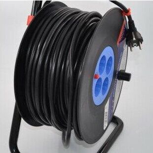 Удлинитель на катушке, количество гнезд - 4 , с заземлением и предохранителем, номинальный ток 16 A, сечение, мм2 - 2x1,0 мм2, длина кабеля - 30 м.