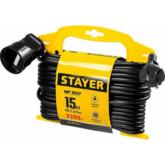 Удлинитель STAYER Удлинитель на рамке "MF 207", 15 м, 2200 Вт, 1 гнездо, ПВС 2х0,75 мм2 55014-15_z01