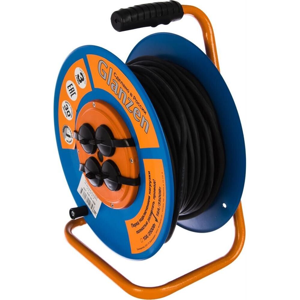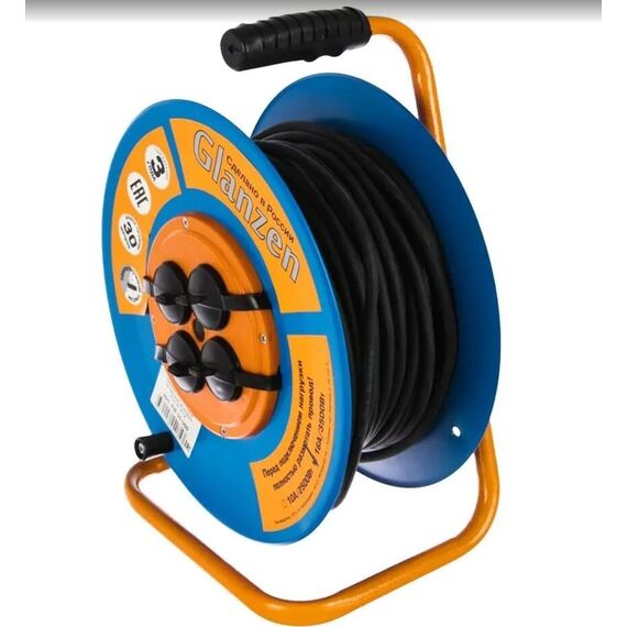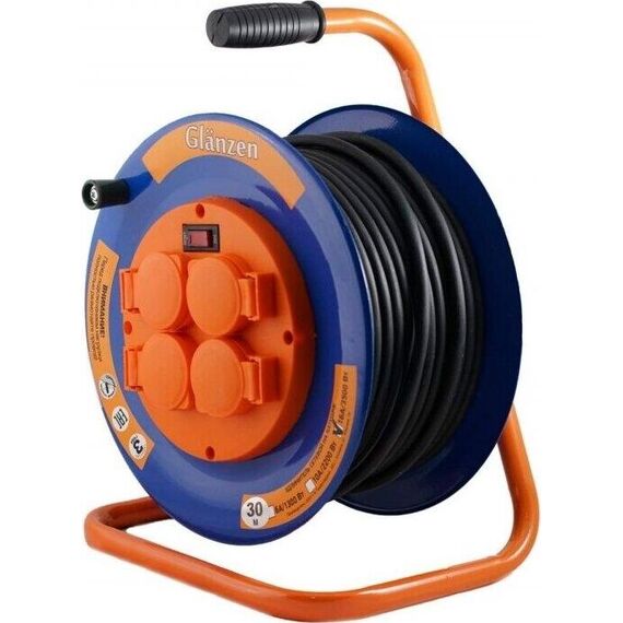 Удлинители GLANZEN EB-30-009, на катушке, с/з, 4 роз- 30м
