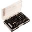 Набор Matrix 11387 состоит из 61 предмета: 60 бит из стали CrV и магнитного держателя. Включает сразу несколько типоразмеров бит длиной 25 мм: SL калибров 3, 4, 5, 5,5, 6, 7, 8, PZ и PH № 0-3, HEX № 1,5, 1,5, 2, 2,5, 3, 3,5, 4, 4,5, 5, 5,5, 6, 7, 8, TORX 5, 6, 8, 9, 10, 15, 20, 27, 30, 35, 40, Spanner калибров 4, 6, 8, 10, TORX Tamper 10, 15, 20, 25, 27, 30, 35, HS № 2, 2,5, 3, 4, 5, 6. Насадки используются в качестве оснастки на шуруповертах и реверсивных отвертках, применяются для монтажа и демонтажа резьбовых крепежей.ПреимуществаПрочность и износостойкость — биты выполнены из высококачественной хромованадиевой стали.Встроенный магнит — битодержатель надежно фиксирует насадки, а также облегчает их замену.Удобное хранение и транспортировка — набор поставляется в пластиковом кейсе.Продуманная упаковка — на кейсе имеется выдвижной европодвес для размещения на стенде.