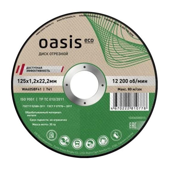 Диск отрезной OASIS Eco 102060200015 (10 шт в упак) 230 Диск отрезной 125х1,2х22,2 мм (P60)