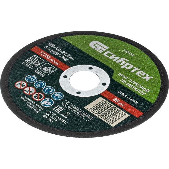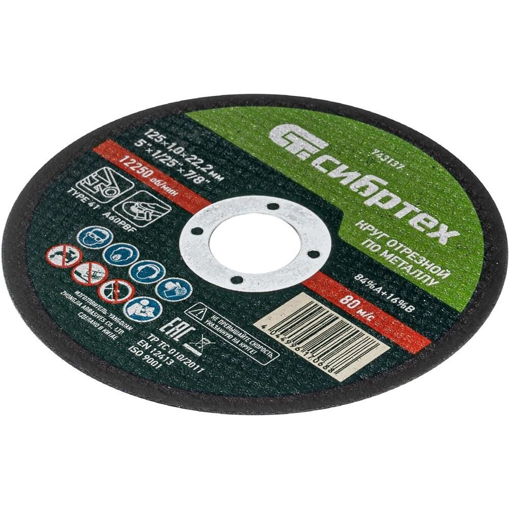 Круг отрезной СИБРТЕХ Круг отрезной по металлу, 125 х 1.0 х 22.2 мм, 84%A+16%B