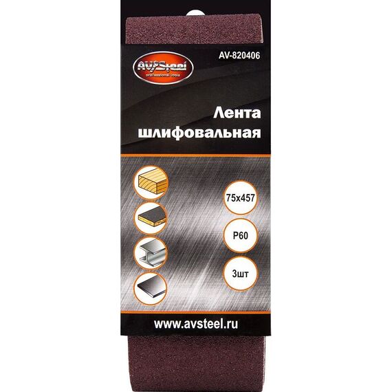 Лента шлифовальная AV STEEL (AV-820406) 75х457мм Р60 3шт