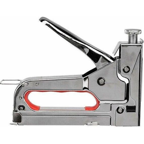 Характеристики:; Материал: конструкционная сталь, резина; Размеры используемых скоб: 4-14 мм; Тип скоб: прямоугольные ТИП 53; Артикулы подходящих скоб: 12-5521, 12-5522, 12-5524,12-5525, 12-5531; Скоб в комплекте: 50 шт.; Преимущества:; Использован механизм, позволяющий снизить усилие на рукоятях; Для удобной работы предусмотрена резиновая накладка на рукоятке; Выполнен из прочных долговечных материалов; Универсальность применения