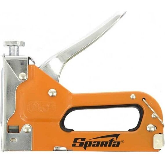 Набор Sparta 42003 состоит из мебельного регулируемого степлера, совместимого с крепежом типа 53 размером 4-14 мм, 500 скоб и рулетки с длиной ленты 2 м. Инструменты позволяют измерять и закреплять на деревянном основании оргалит, фанеру, ДСП, ДВП, пленку, утеплитель и другие листовые материалы. Набор будет полезен для сборки и перетяжки мебели, укладки напольных покрытий и монтажа теплоизоляционного материала. Подходит для бытового применения.ПреимуществаПрочность и долговечность — корпус степлера изготовлен из стали методом штамповки и окрашен для предотвращения образования коррозии.Эффективная работа с материалами разной плотности — винтовой регулятор позволяет плавно изменять силу удара.Безопасное хранение и транспортировка — металлическая скоба-фиксатор удерживает рукоятку степлера в нерабочем положении, предотвращая самопроизвольное срабатывание ударного механизма.