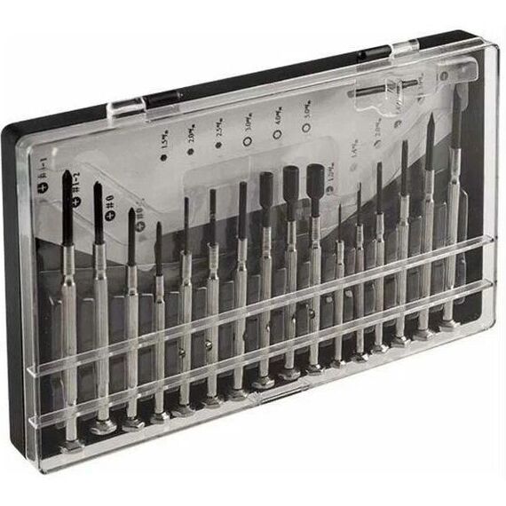 Набор часовых отверток (16 предметов): отвертки шлицевые – 6 штук разных размеров (1.0мм; 1.4мм; 2.0мм; 2.4мм; 3.0мм; 3.5мм); отвертки крестообразные – 4 штуки (#0-2; #0; #1-2; #1-1); отвертки крестообразные – 4 штуки (#0-2; #0; #1-2; #1-1); отвертки крес