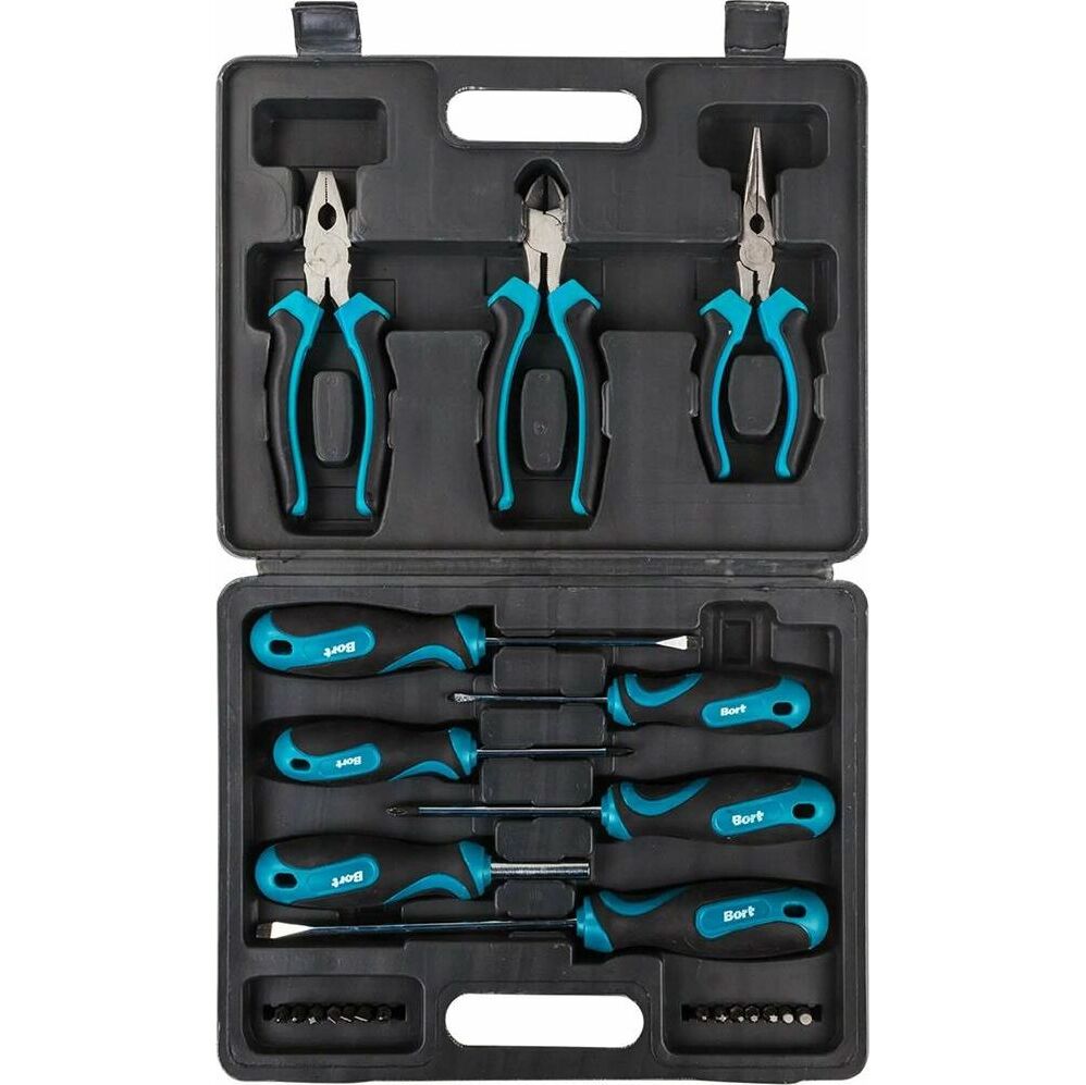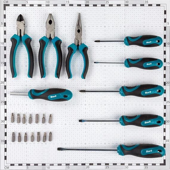 Набор ручного инструмента, Габариты упаковки 30x6x23 см, Предметов в наборе 23 шт, Гарантия 2 года, Материал Сталь CrV, Вес изделия 1,64 кг, Мастер-бокс 10 шт, Отвертки (5 шт), Отвертка-держатель для бит (1 шт), Плоскогубцы (1 шт), Тонкогубцы (1 шт), Бокроезы (1 шт), Биты 25 мм (14 шт), Кейс (1 шт).