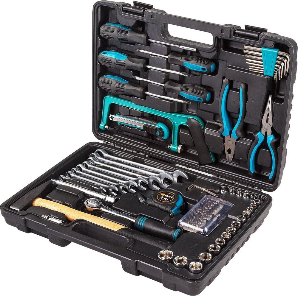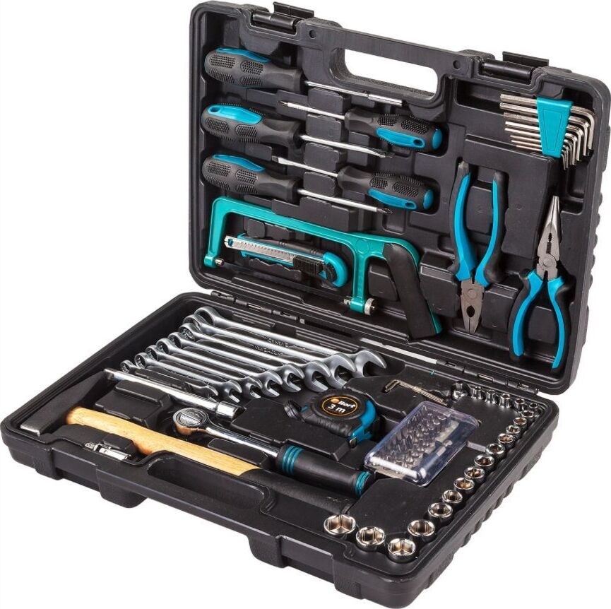 Набор ручного инструмента, Предметов в наборе 84 шт, материал Сталь CRV, Вес брутто 4,4 кг, Габариты упаковки 40x8x30 см, Мастер-бокс 4 шт, В КОМПЛЕКТЕ Ключ шестигранный (11 шт), Отвертка (4 шт), Отвертка-держатель для бит (1 шт), Ключ гаечный (8 шт), Ключ трещеточный 3/8" (1 шт), Ножовка по металлу (1 шт), Нож (1 шт), Рулетка измерительная 3м (1 шт), Набор бит в кейсе (31 шт), Плоскогубцы (1 шт), Длинногубцы (1 шт), Молоток (1 шт), Головки 1/4" (9 шт), Головки 3/8" (10 шт), Переходник 3/8"–1/4" (1 шт), Кардан шарнирный 1/4" (1 шт), Удлинитель квадрат 3/8 6 (1 шт).