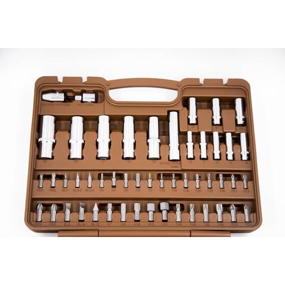 Универсальный набор инструмента расширенной комплектации, позволяющей производить обслуживание резьбовых соединений, в том числе при работе с крепежом на относительно высоких шпильках и заглубленных деталях с внешними рабочими профилями в широком диапазоне, включая профиль внешний TORX®. Данный набор можно считать отличным дополнением для организации рабочего места механика.