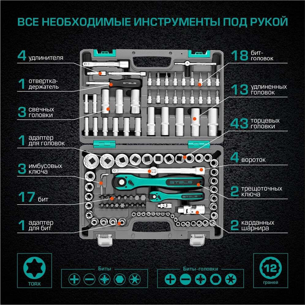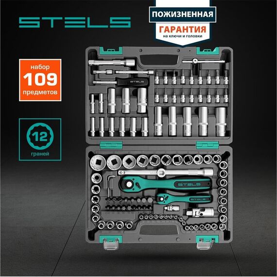 Набор инструмента STELS Набор инструментов 109 предметов 12 гранные головки// STELS 14122