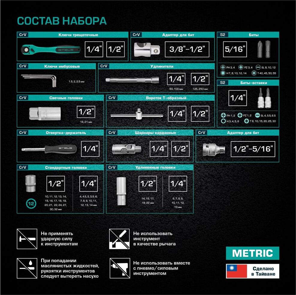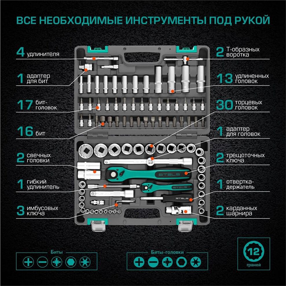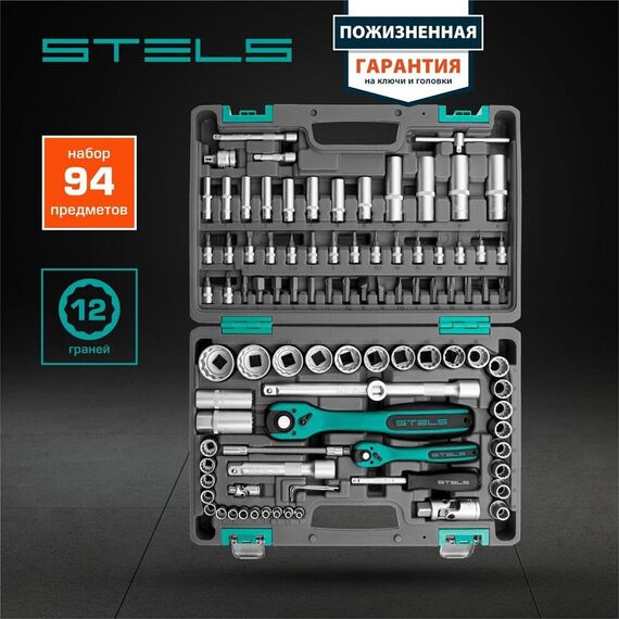 Набор инструмента STELS Набор инструментов 94 предмета, 12 гранные головки// STELS 14118
