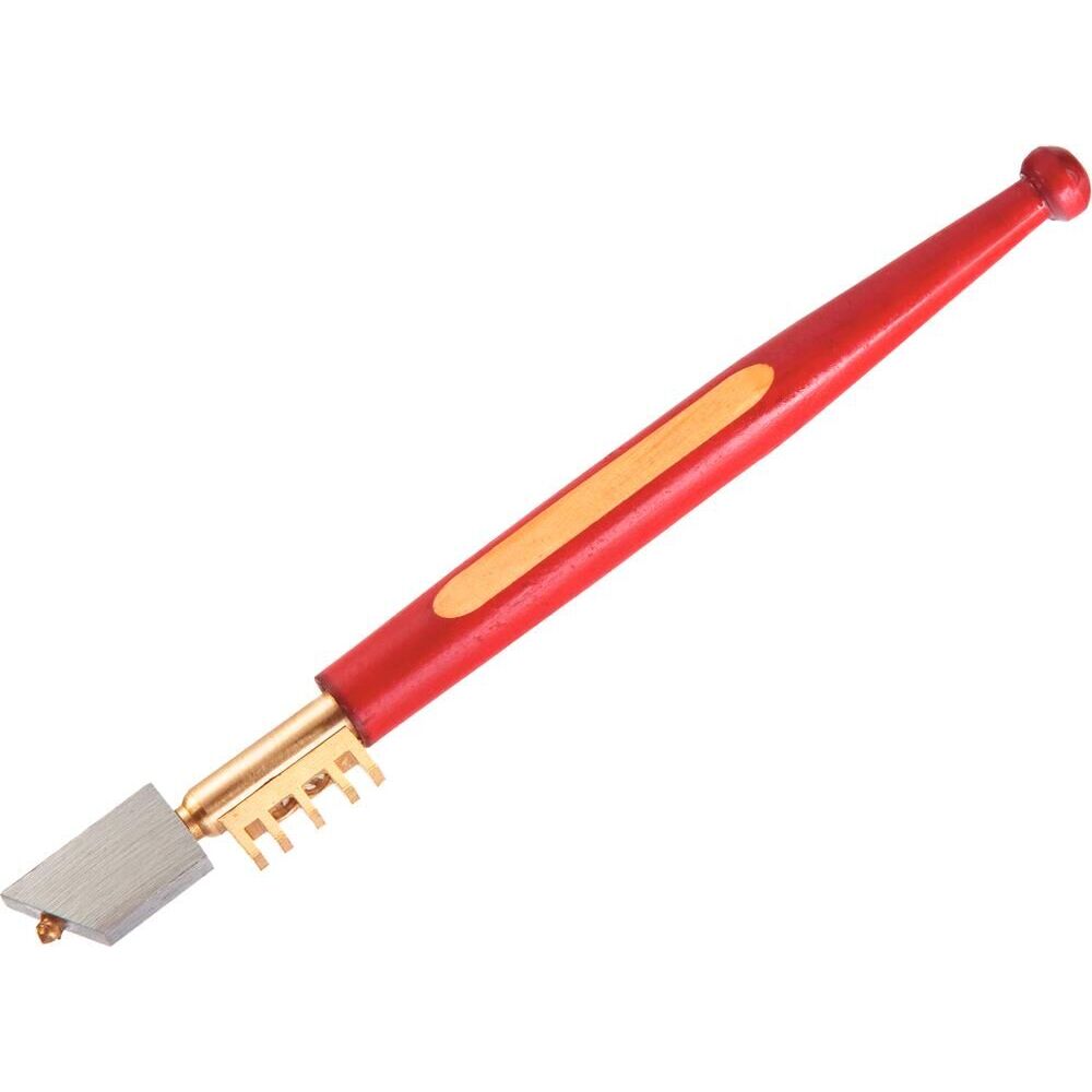 Рукоятка изготовлена из древесины и покрыта лаком. Режущим элементом является искусственный алмаз. Головка инструмента имеет специальную форму для удобства в работе. Стеклорез имеет четыре паза размерами 2, 3, 2 x 4 мм, предназначенных для захвата при ломке узких кромок стекла.
