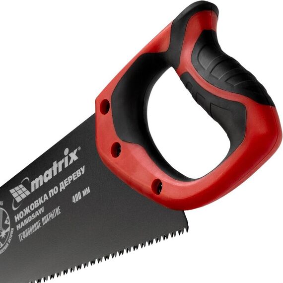 Ножовка MATRIX Ножовка по дереву, 400 мм, 7-8 TPI, зуб-3D, каленый зуб, тефлоновое покрытие полотна, двухкомпонентная рукоятка 23549