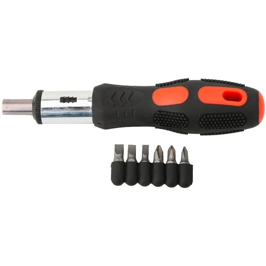 Количество насадок в наборе 6 шт Трещоточный механизм есть Намагниченный наконечник нет Ударная нет Для точных работ нет Материал рукояти 2-х компонентный Диэлектрическое покрытие нет Форма ручки Прямая Гибкая нет Материал насадок CrV Тип шлица SL, PH Slotted (SL) да