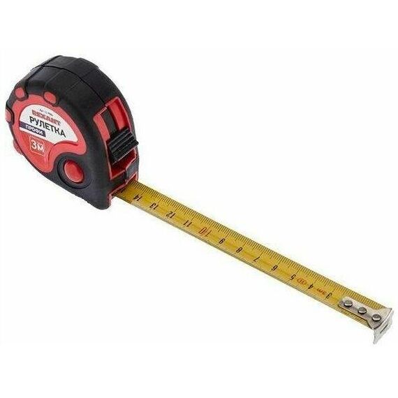 Измерительная рулетка REXANT «Профи» необходима при проведении измерительных работ в строительстве, хозяйстве, ландшафтных и геодезических исследованиях. Эргономичный прорезиненный корпус выполнен из ударопрочного пластика, не скользит в руках. Для удобства использования рулетки предусмотрены кнопки стопора и фиксации тормоза. Полотно обладает удобным зацепом с отверстием посередине. На корпусе расположена клипса-зажим для фиксации рулетки на ремне, кармане или поясной сумке. Ремешок позволяет надевать инструмент на запястье, чтобы освободить руки для работы. Характеристики: Длина: 3 м Ширина полотна: 16 мм Материал полотна: закаленная сталь Материал корпуса: ABS-пластик, резина Преимущества: Отверстие на зацепе позволяет зафиксировать полотно рулетки на шляпке гвоздя или самореза Большой вылет прочного полотна без излома Ударопрочный двухкомпонентный корпус Глянцевое покрытие полотна