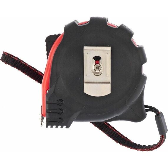 Прочный пластиковый корпус обрезинен для защиты инструмента при падениях. Эргономичное устройство рулетки включает три независимых механизма фиксирования ленты, что делает работу с рулеткой наиболее удобной. Измерительная лента имеет полимерное покрытие, стойкое к абразивному воздействию. Ограничитель измерительной ленты магнитный, что позволяет фиксировать его на металлических поверхностях. Цена деления – 1 мм. Класс точности – 2. Предназначена для измерения размеров и расстояний.