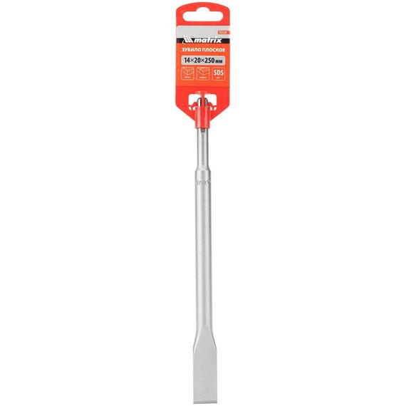 Плоское зубило Matrix 70320 размером 14 х 20 х 250 мм совместимо с перфораторами с патроном под хвостовик SDS PLUS.