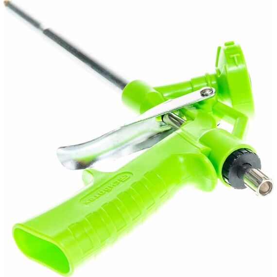 Предназначен для работ с монтажной пеной в баллонах, имеющих резьбовой соединитель. Используется для герметизации швов, трещин, стыков, проемов и пр. Эргономичный облегченный корпус из ударопрочного пластика обеспечивает повышенную надежность и удобство в работе. Трещоточный регулятор подачи пены способствует ее точному дозированию и равномерному выходу. При работе с инструментом необходимо использовать защитные очки и перчатки. Подлежит обязательной промывке после окончания работ. Преимущества: Трещоточный регулятор подачи пены Облегченный корпус из ударопрочного пластика. Игольчатый и шариковый клапаны из нержавеющей стали.