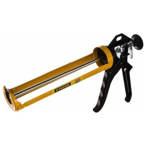 Скелетный пистолет для герметика REXANT используется при строительных и ремонтных работах, когда необходима качественная герметизация отверстий и швов. Благодаря цилиндрической форме и усиленному корпусу работать можно как с картриджем, так и с тубой. Пистолет для герметика прост и удобен в применении, долговечен и предназначен для работы со всеми стандартными картриджами 9 (310 мл). Конструкция корпуса усилена, что значительно продлевает срок эксплуатации пистолета. Он оснащен гладким шестигранным штоком (сечение 7 мм) с бесступенчатой подачей, предназначенным для более ускоренной работы. Технические характеристики: Конструкция: скелетный Материал рукоятки: сталь, алюминиевый сплав Материал корпуса: сталь, алюминиевый сплав Объем баллона: 310 мл Сечение штока: 7 мм